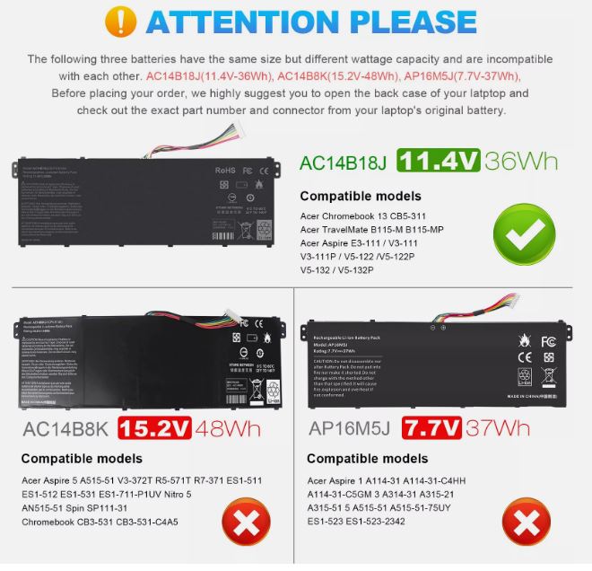 Tags: 3ICP5/57/80, AC14B18J, Acer, Aspire, B115-M, B115-MP, B116, C810, C910, CB3-531, CB5-311, CB5-311P, CB5-571, Chromebook, E3-721, E5-771, E5-771G, ES1-311, ES1-511, ES1-512, ES1-711, ES1-711G, P236-M, R3-131T, R7-371T, Travelmate, V3-111, V3-111P, V3-112, V3-112P