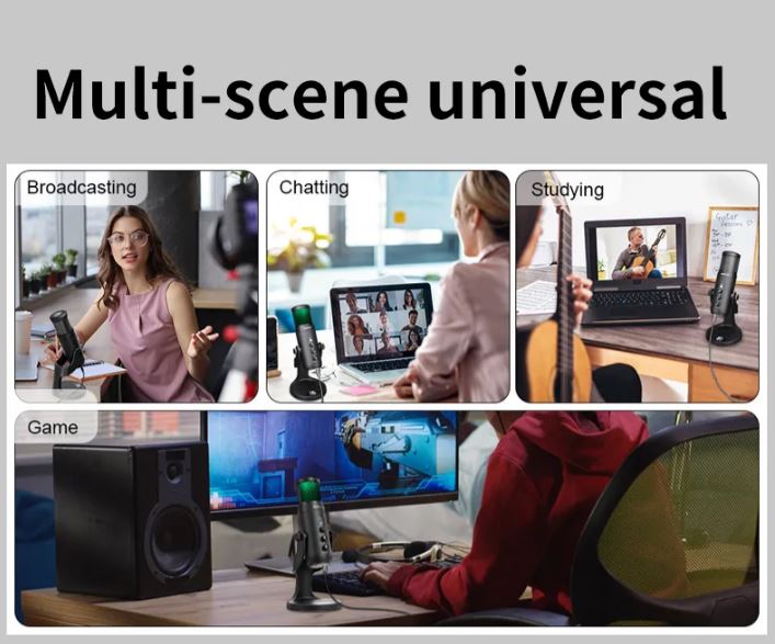 USB Professional Plug & Play Microphone With RGB Function Noise Reduction mic pop filter And Stand With Compatibility: Windows, macOS, Linux, Android devices